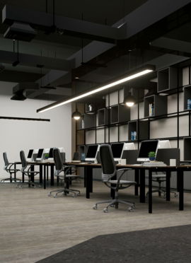 Ambientes corporativos com foco em eficiência, prazo e organização.